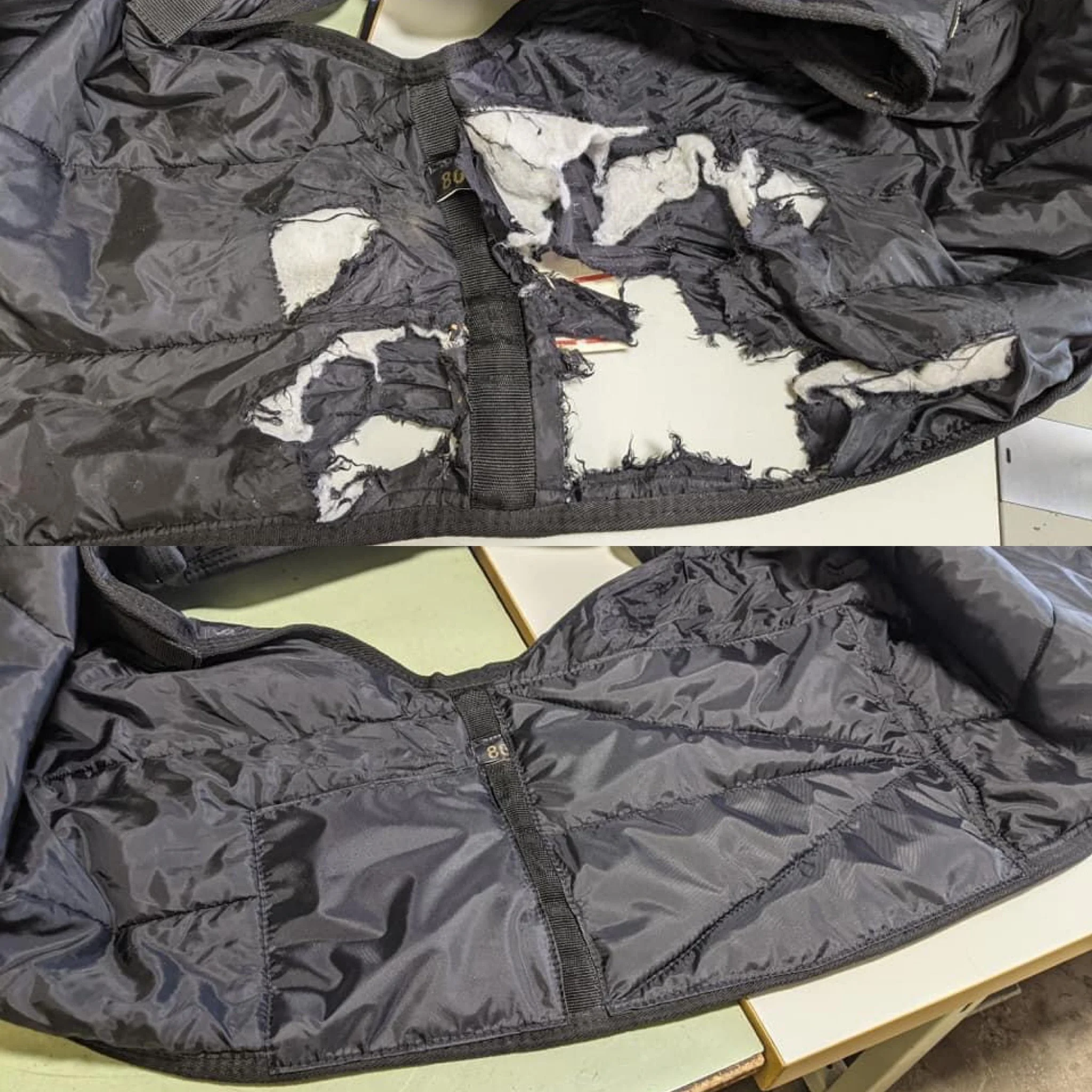 While the majority of repairs we do are equine blankets and sheets, we also offer repairs for therapeutic items such as Back on Track and other comparable brands, hay bags, leg protection, etc.